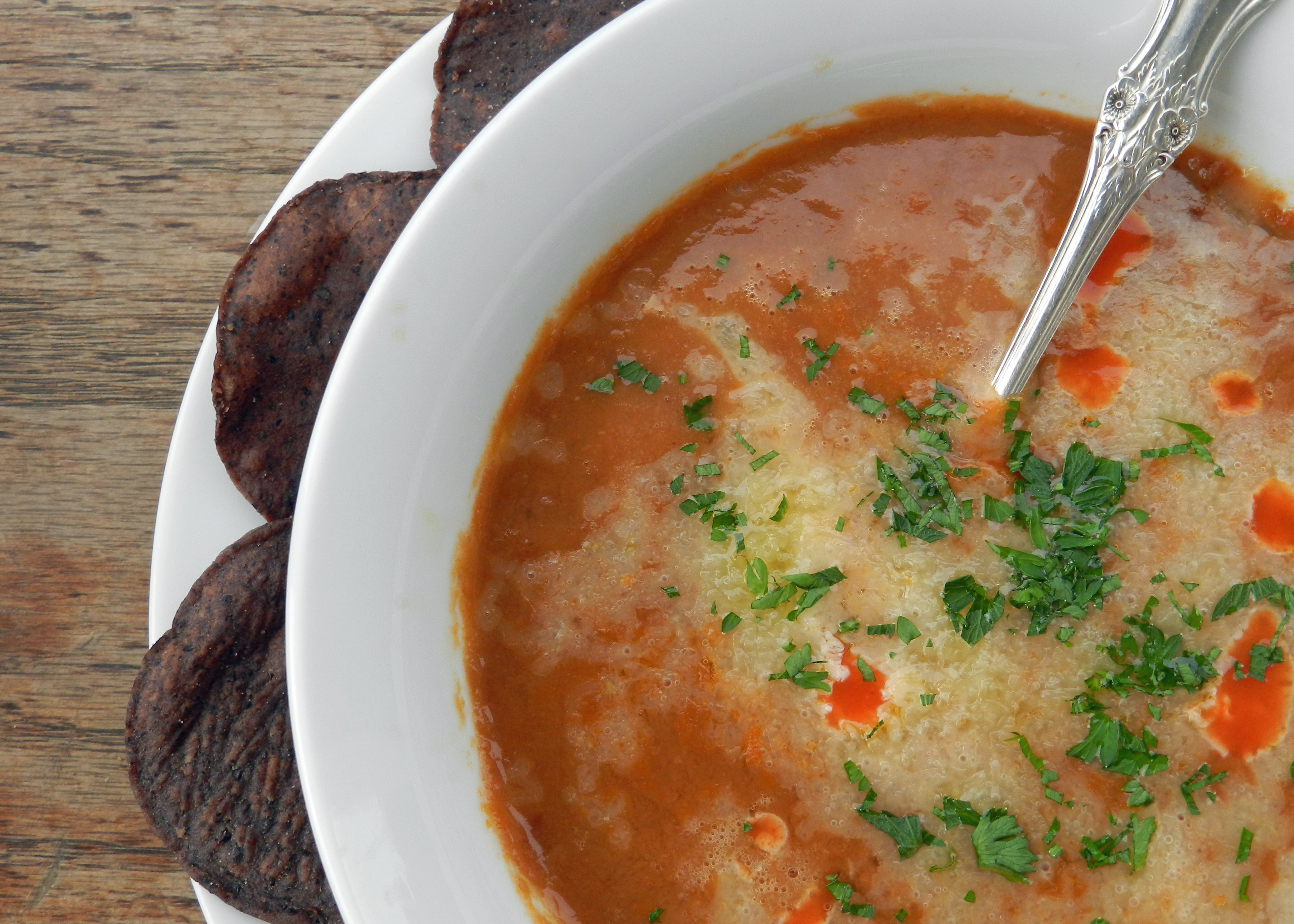 I served the soup topped with a bit of grated cheese, a few splashes of hot sauce, and some chopped fresh herbs. We had just bought some Cumin Gouda from the Franklin Farmers Market in Nashville and I thought it would be good with the soup. It was! The cheese is from Kenny’s Farmhouse Cheese in Austin, Kentucky. If you happen to see them at a market near you, I would highly recommend them (or you can order online). They have some unique flavors: Cranberry Havarti, Coffee Cheddar, Garlic Paprika Monterey Jack, etc. I also served the soup with Beanitos’ Black Bean Chips, a new chip we recently discovered. I have several food allergies/food sensitivities and avoid corn, but sometimes I want a corn chip. Well, these are a good substitute – no corn or gluten; but high in protein thanks to the black beans!