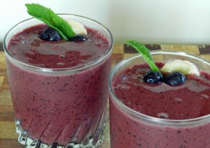 Pour contents into blender container. Cover with the lid (otherwise you might end up with purple goodness all over the place!). Blend until smooth and purple. Enjoy!