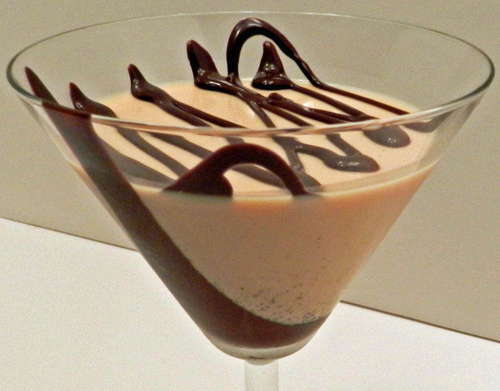 Pour the panna cotta mixture through a sieve into a large glass pitcher or measuring cup. Place this container in an ice water bath to help chill the mixture. You might want to cover the container with a lid or plastic wrap so water doesn’t get in it. Use a pitcher or container with a spout to makes\ it easier to pour the panna cotta into martini glasses or other individual-sized glasses. You can also pour it into a regular serving dish (4-cup capacity) and serve it family style. Refrigerate for about 3 hours or until set. If you don’t use the water bath, it can take longer to set, up to 6 hours.